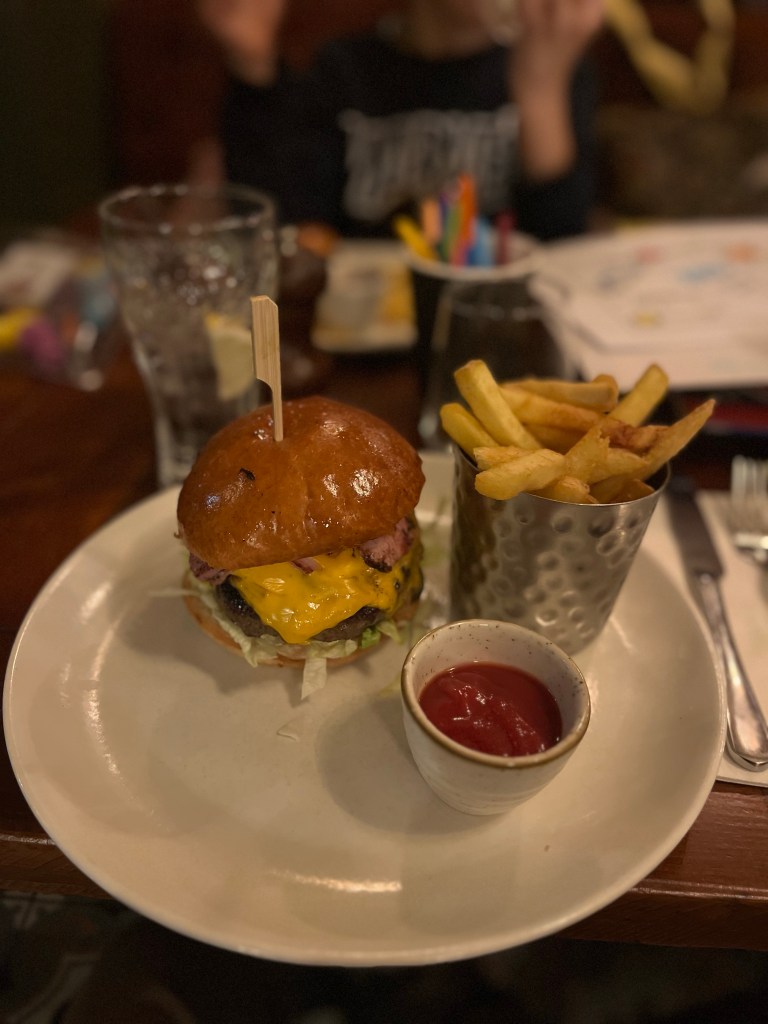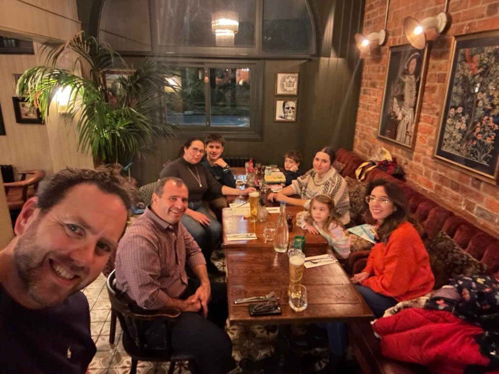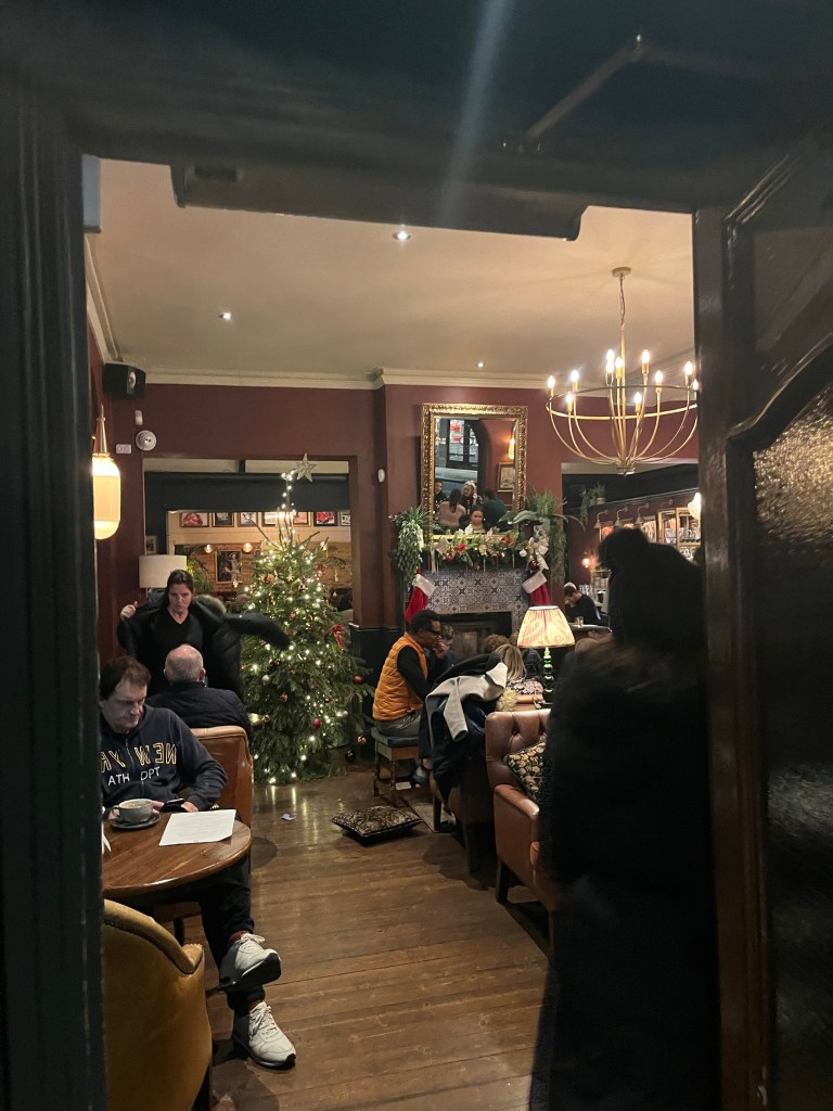 Sunday morning visit to the British Library while waiting for David and family to arrive home. Xmas drinks , pressies and a virtual fire 🔥. Followed by dinner at the Kings Head .