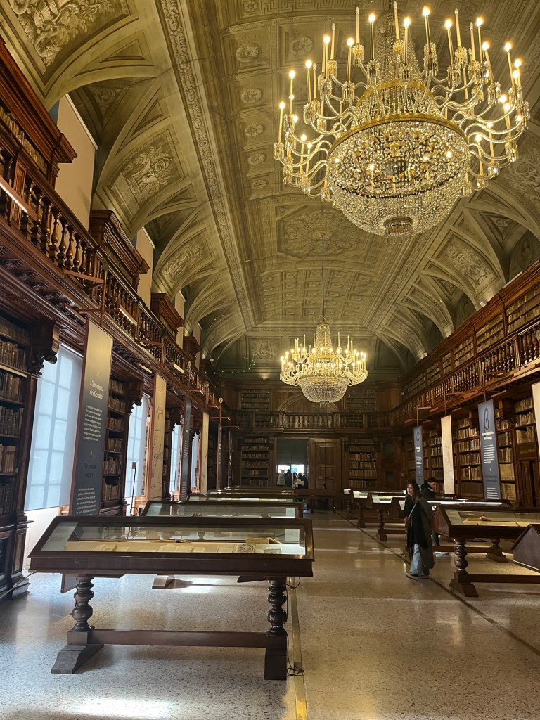 Continued the lovely walk through the back streets of Brera to the Pinoteca gallery. Spent a good 2 hours examining all the magnificent artworks as well as the Ancient Greek and Latin text library .