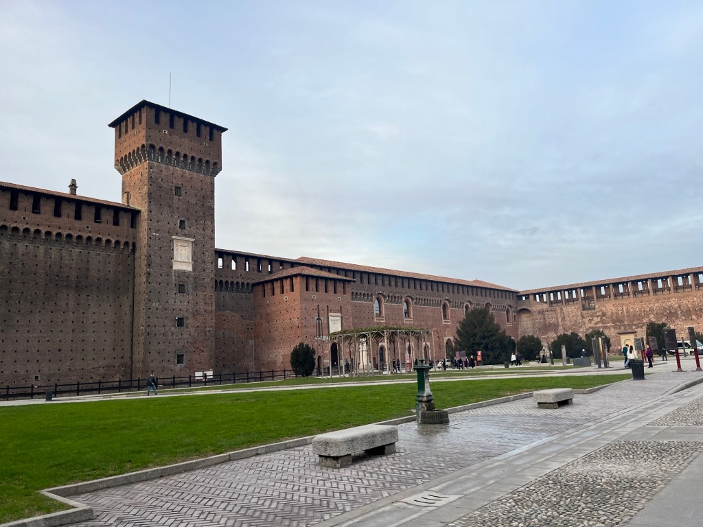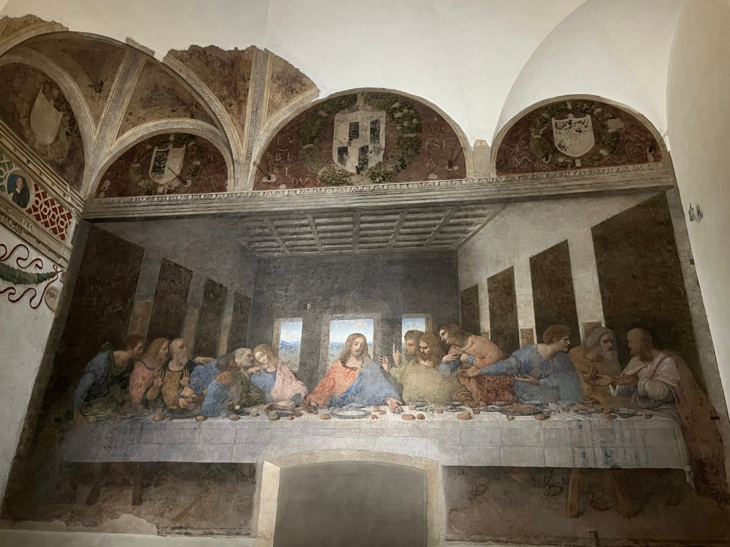 Reconvened at Santa Maria Grazia to meet our pre booked guide to see Leonardo de Vinci’s Last Supper – amazed by its size and provenance – was very impressive in real life. Cold and brisk walk home through the Sforza palace courtyard , followed by a cracking home-cooked Milanese veal casserole dinner we whipped up !