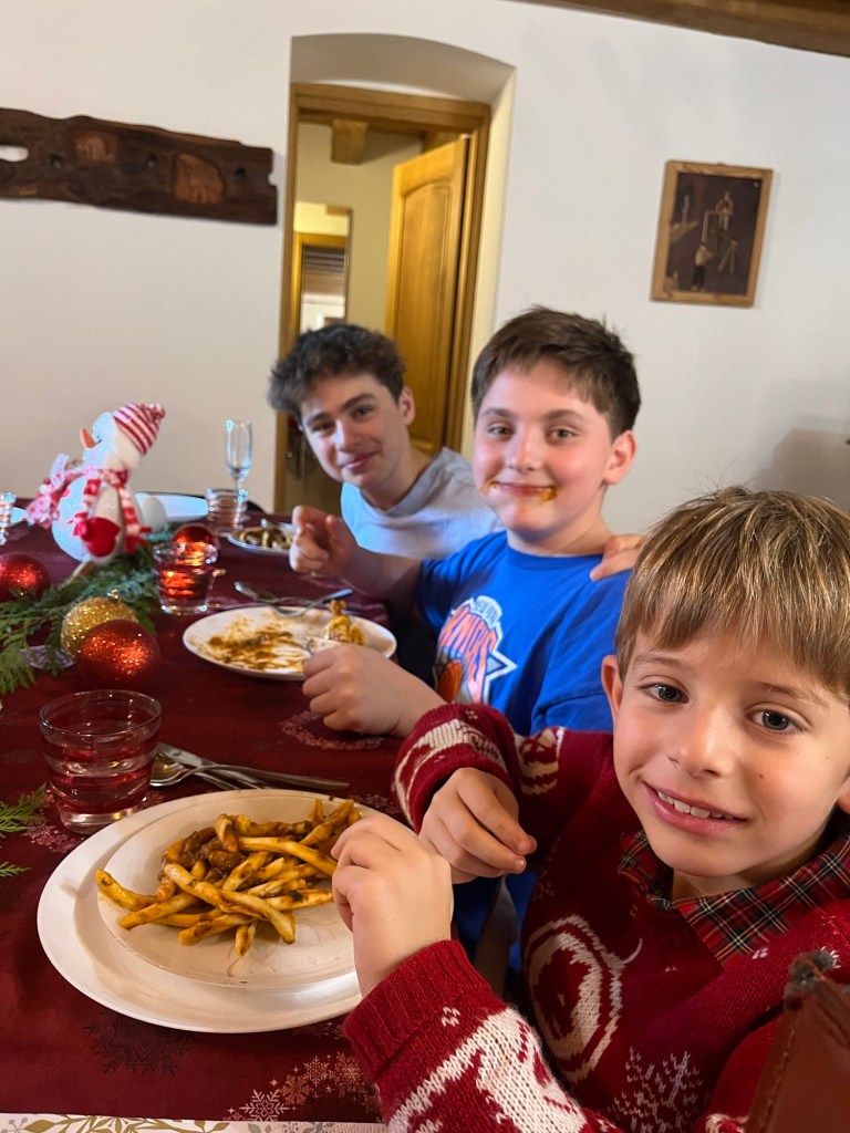 Highlight was the gingerbread house decorating contest – girls vs boys.