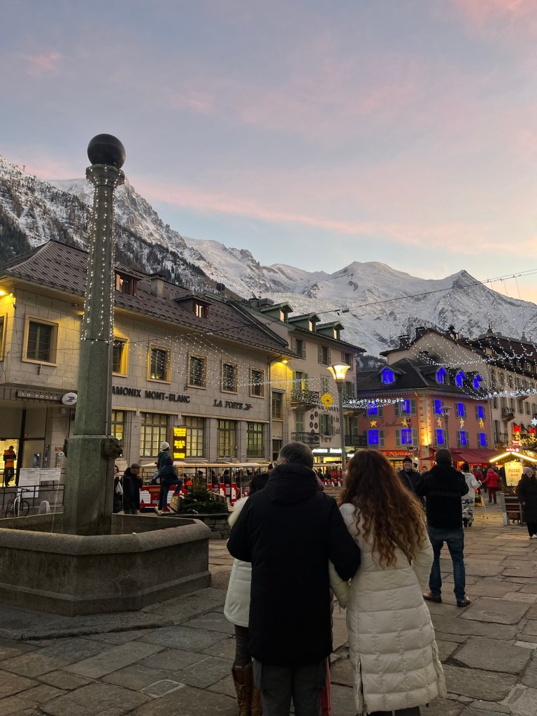 The a good few hours is snow play on the Pavillion level, followed by a border crossing into France for a mountain sunset and evening walk through beautiful Chamonix and more mulled wine !