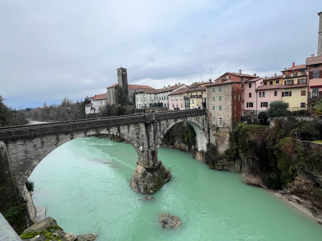 As well as the Natisone River that flows through under the bridge . Called “the Emerald Beauty” due to its unique green colour .