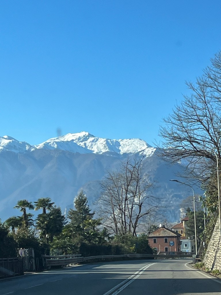 We’re staying in an old lake villa here and it’s pretty special with views that are amazing! 180 degree view of the lake with snow dusting the mountains .