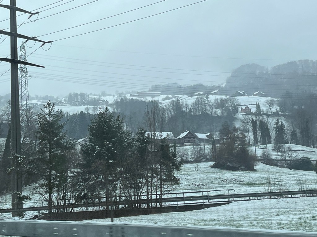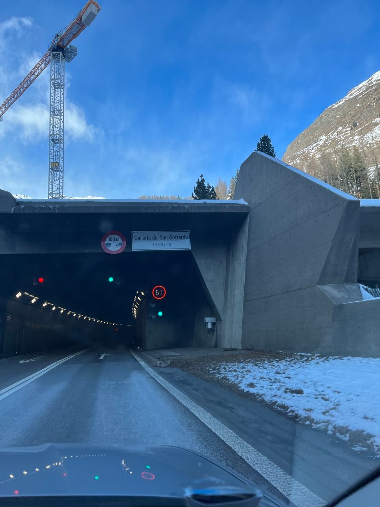 A bit further on we travelled under the Alpes in the 16km-long St Gottard tunnel, which spat us out the other end into a winter wonderland!