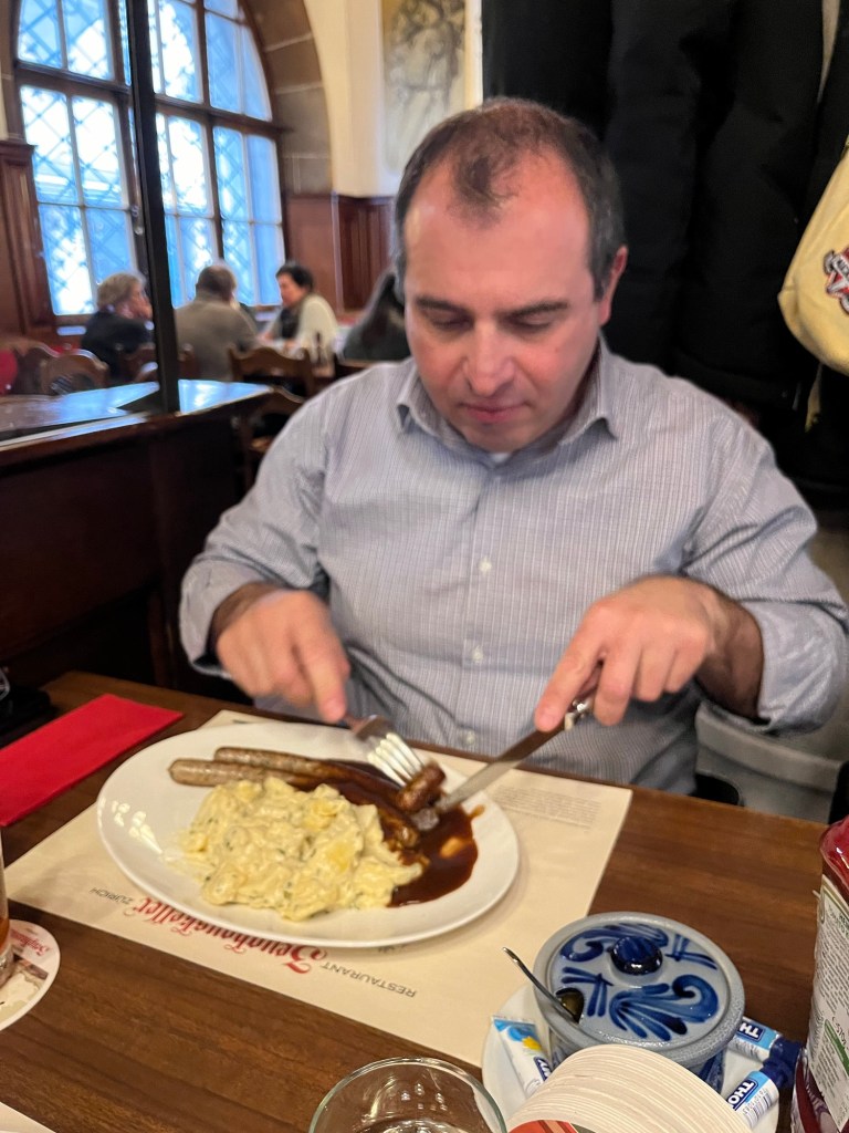 Swiss German sausages , schnitzels and potatoes multiple ways for all – don’t forget the sauerkraut!